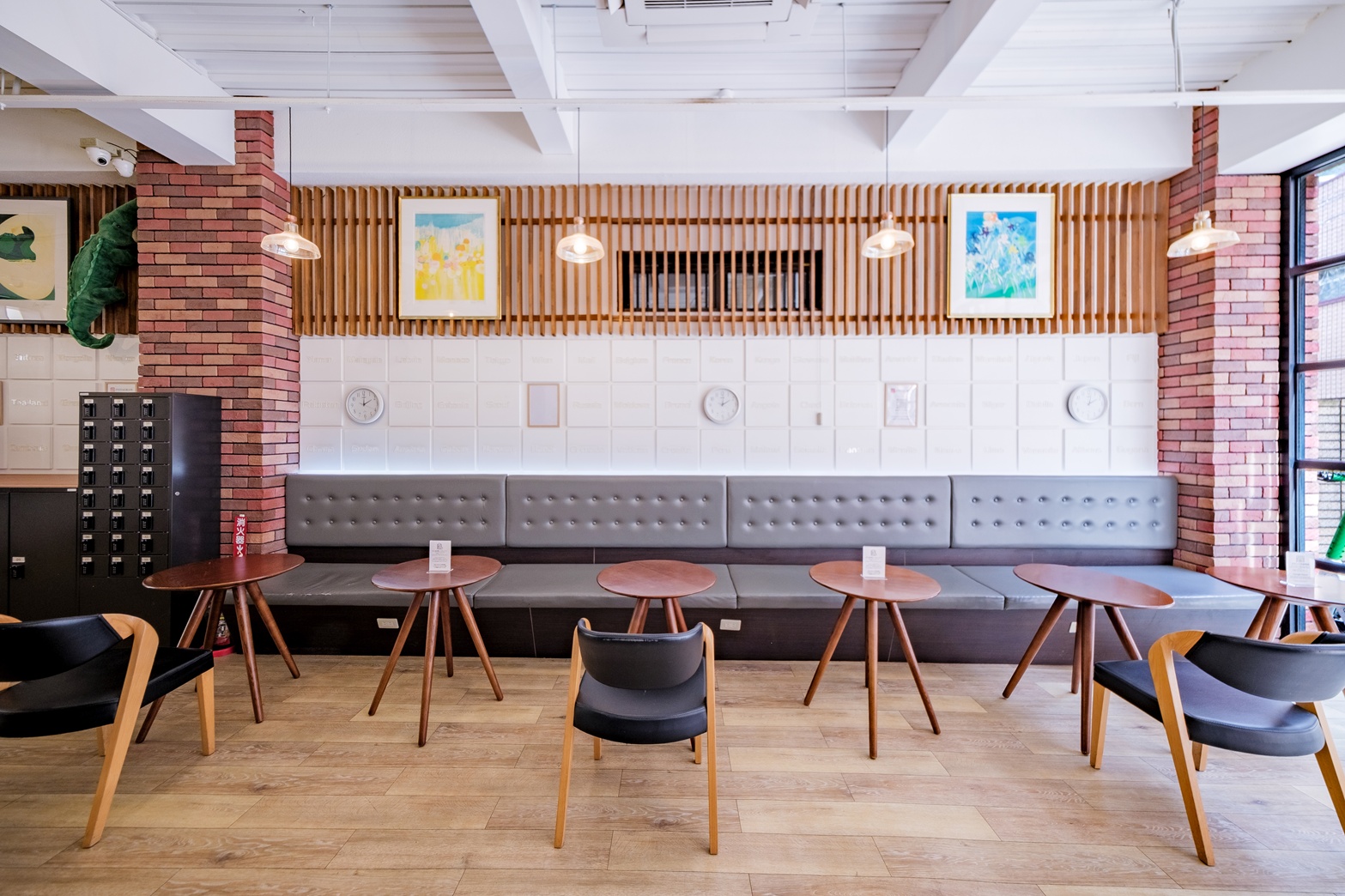 넓은 라운지는 본 숙소의 매력입니다. 전원 콘센트와 WiFi가 있어 작업 공간으로도 이용할 수 있습니다.